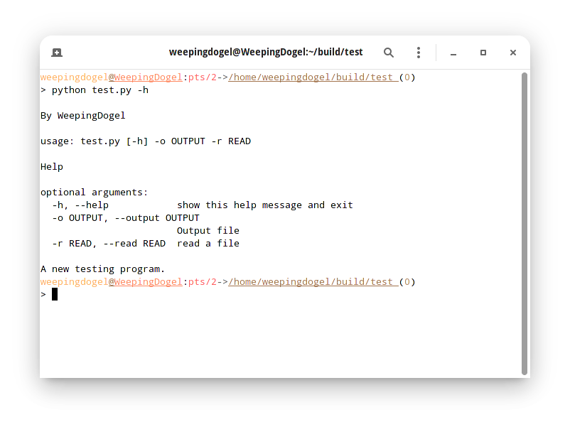 parser = argparse.ArgumentParser(description='Help', epilog='A new testing program.')
