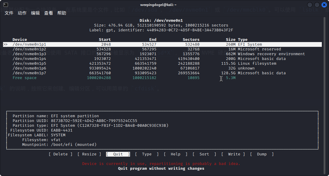 /dev/sd*X, 而使用 NVME 硬盘则会显示为 /dev/nvme*n*创建编辑分区
