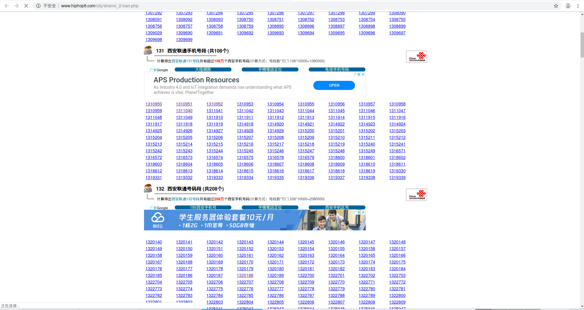 举个例子,这里有一个 全国号码段(链接已失效) 的网站,我们需要取一个城市中其中一个号码段的所有的号码。比如西安市