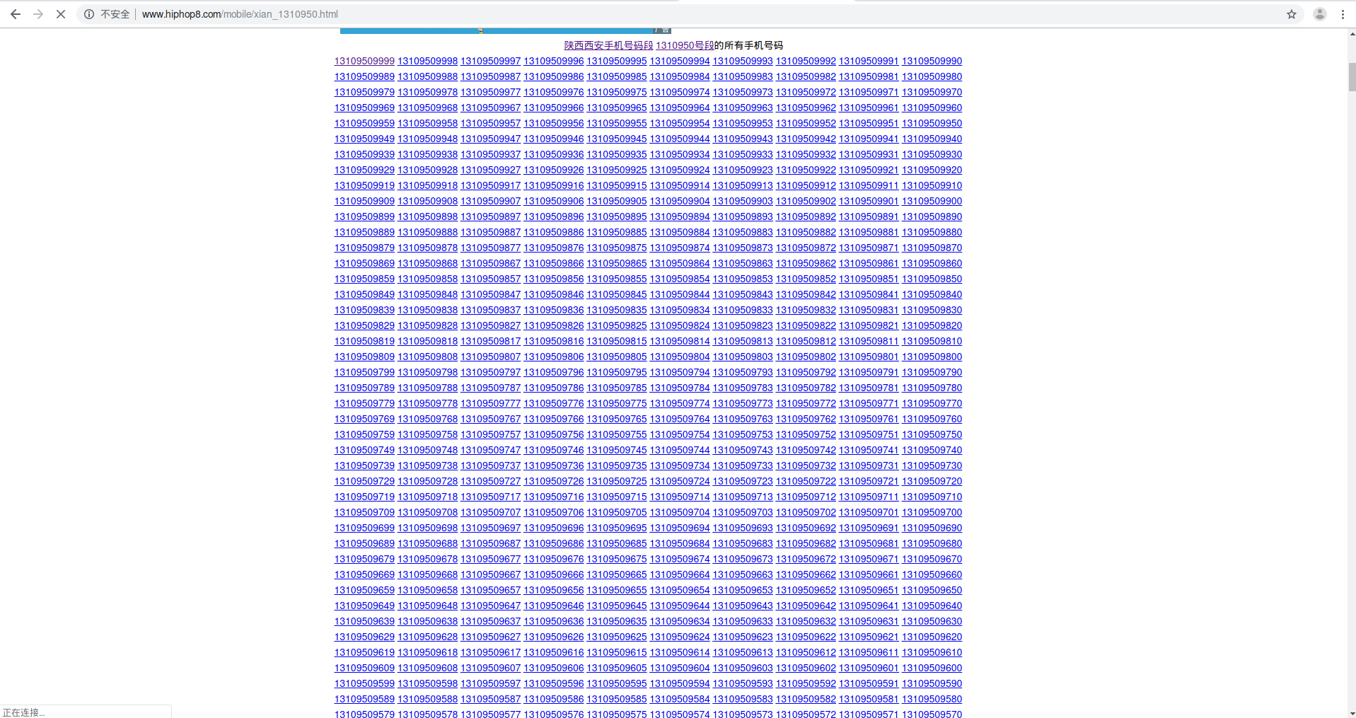 可以看到,号码段有很多,每个段有一万个号码。这个时候怎么办呢?总不可能用鼠标一条一条的去复制粘贴吧?这个时候爬虫就派上用场了。